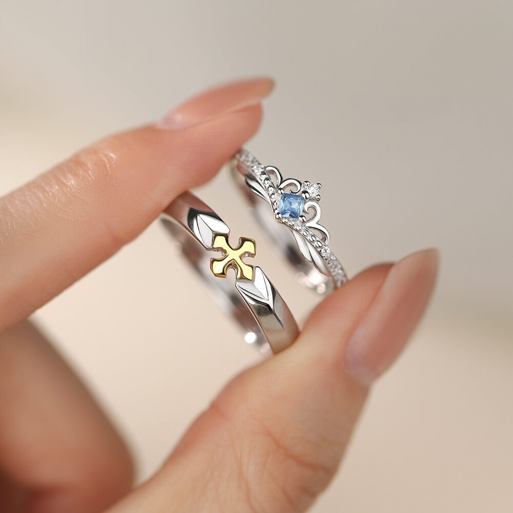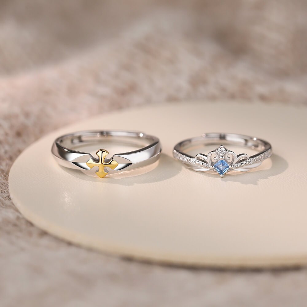 This princess and knight cross ring is crafted from sterling silver, designed as a symbolic silver ring representing protection, strength, and connection.