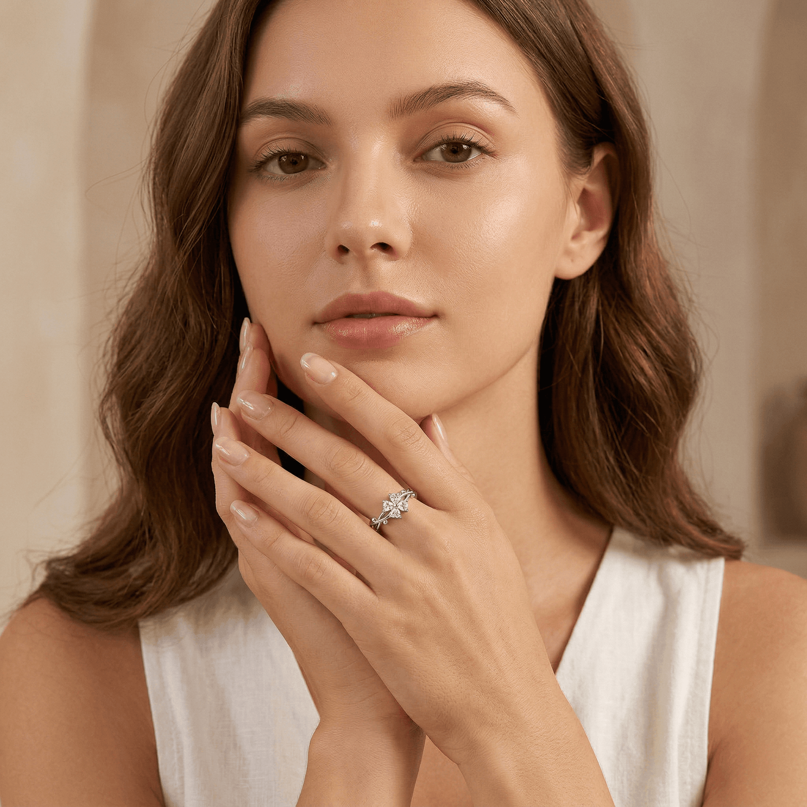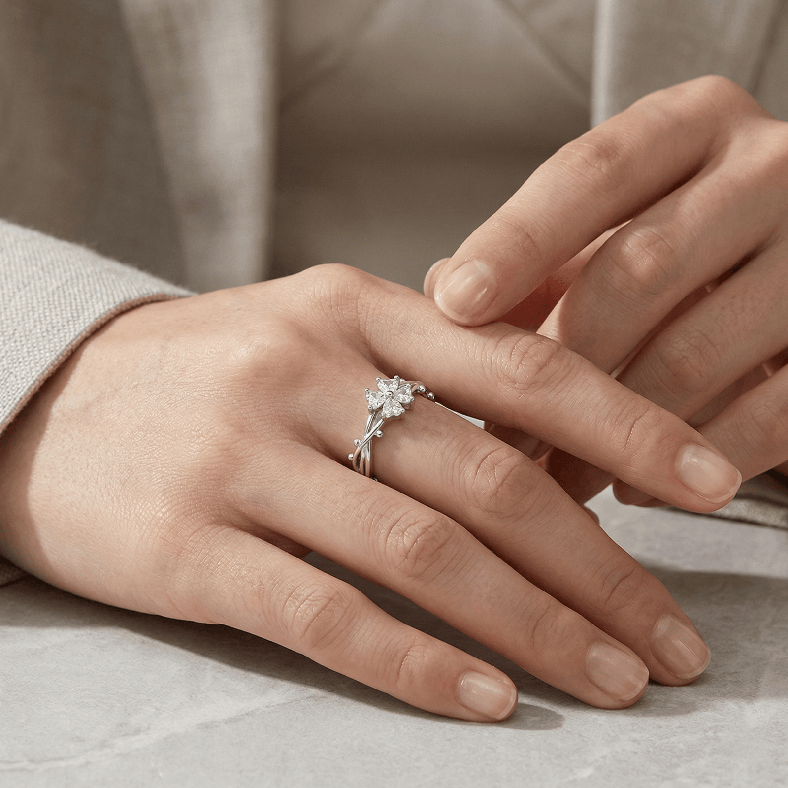 As a minimalist silver ring with symbolic meaning, the clover design represents luck and balance, while the zirconia stones add a soft, refined sparkle.